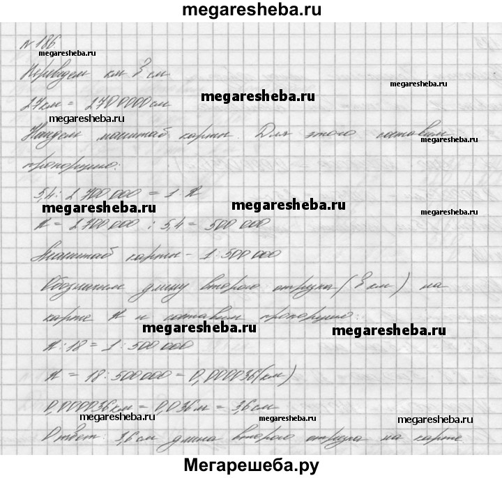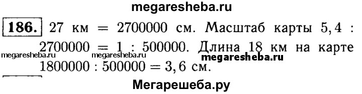 186. Один отрезок на карте имеет длину 5,4 см, а на местности 27 км. Какую длину на этой карте будет иметь отрезок, длина которого на местности 18 км?