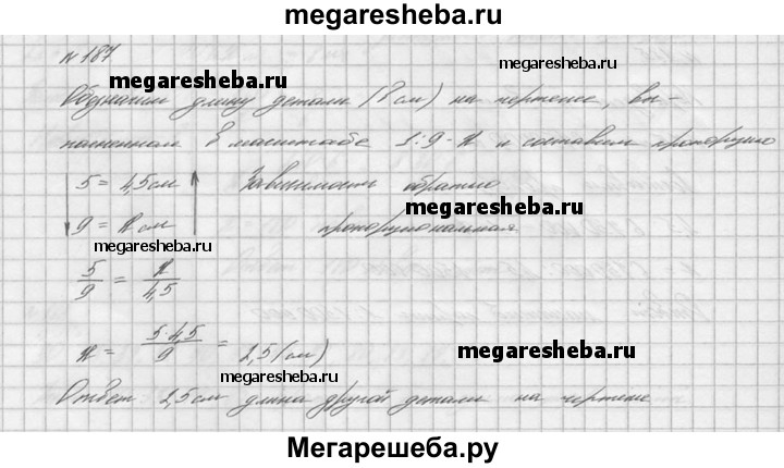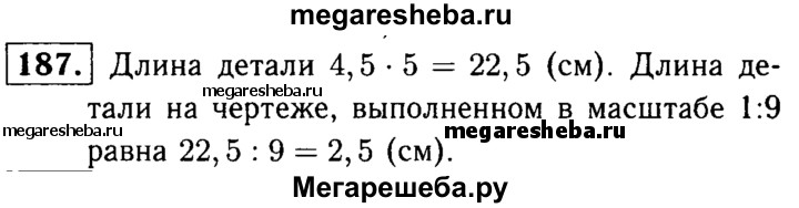 187. Деталь на чертеже, выполненном в масштабе 1:5, имеет длину 4,5 см. Какую длину будет иметь эта же деталь на чертеже, выполненном в масштабе 1: 9?