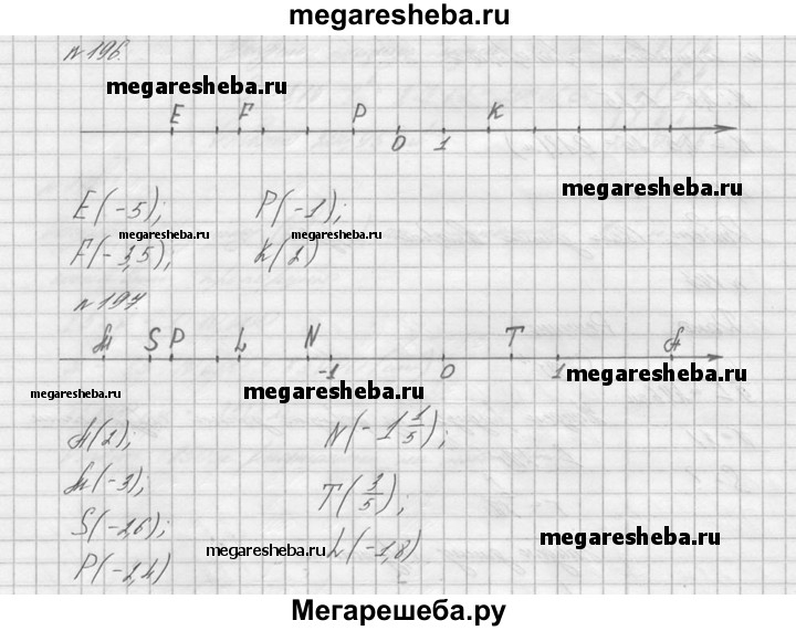 196. Запишите координаты точек E, F, К и Р, изображенных на рисунке 19.