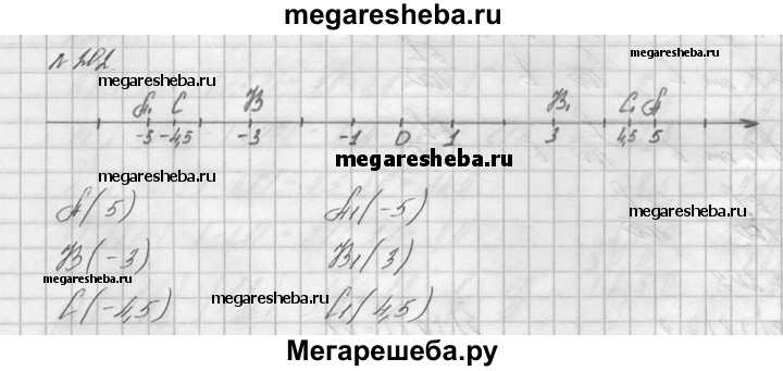 202. Отметьте на координатной прямой точки, координаты которых 5; -3; -4,5, и точки, координаты которых противоположны этим числам.