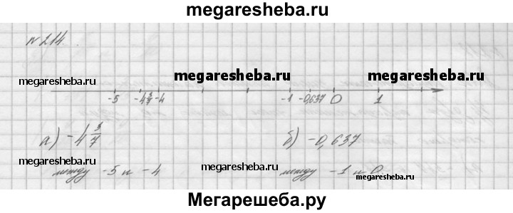 214. Между какими соседними целыми числами заключено: а) -4*3/7; б) -0,637?