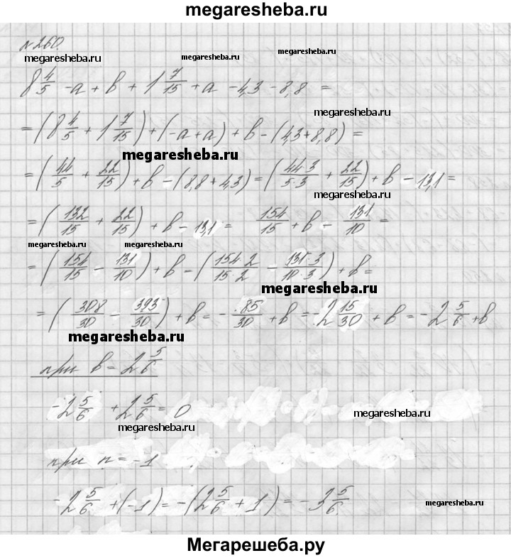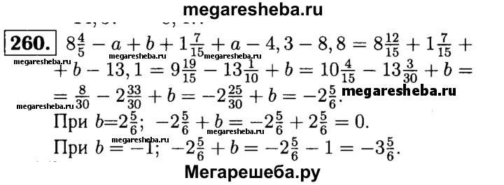 260. Упростите выражение 8*4/5 – а + b + 1*7/15 + а - 4,3 - 8,8 и найдите его значение при b = 2*5/6 и b = -1.