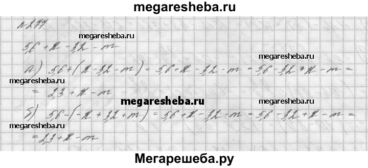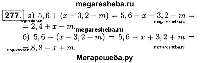 277. Заключите в скобки три последних слагаемых в выражении 5,6 + х - 3,2 - m, поставив перед скобками: а) знак « + »; б) знак « - ».