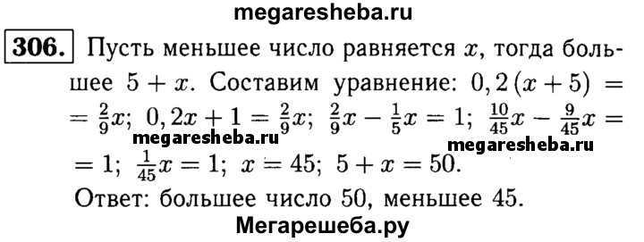 306. Разность двух чисел 5. Найдите эти числа, если 0,2 большего из них равны 2/9 меньшего.