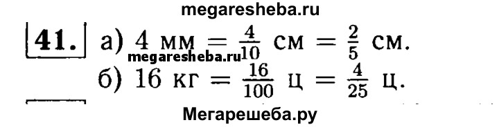 41. Какую часть: а) сантиметра составляют 4 мм; б) центнера составляют 16 кг?