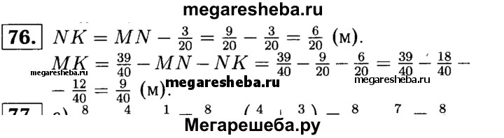 76. Периметр треугольника MNK равен 39/40 м; MN = 9/20 м, NK меньше MN на 3/20 м. Найдите МК.