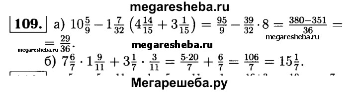 109. Найдите значение выражения: а) 10*5/9 – 1*7/32 * (4*14/15 + 3*1/15); б) 7*6/7 * 1*9/11 + 3*1/7 * 3/11.