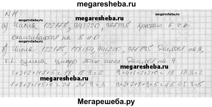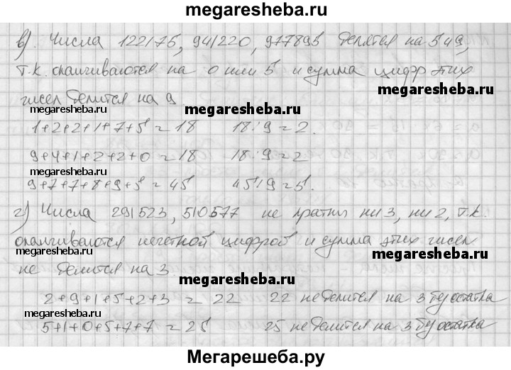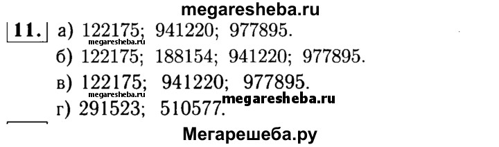 11. Из чисел 122 175; 188 154; 291 523; 510 577; 941 220 и 977 895 выпишите те, которые: а) кратны 5; б) делятся на 9; в) делятся на 5 и 9; г) не кратны ни 3, ни 2.