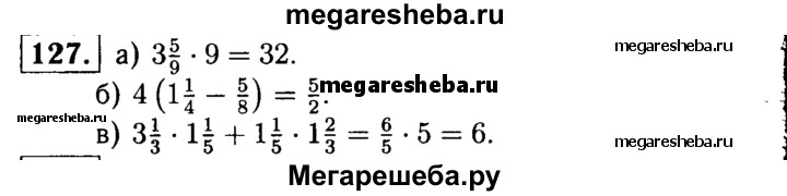127. Найдите значение выражения: а) 3*5/9 * 9; б) 4 * (1*1/4 – 5/8); в) 3*1/3 * 1*1/5 + 1*1/5 * 1*2/3.