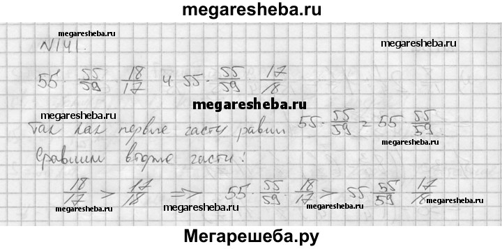 141. Не выполняя умножения, сравните 55*55/59 * 18/17 и 55*55/59 * 17/18.