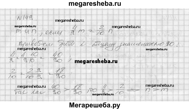 149. Какое из чисел меньше: m или n, если 4/9 от m равны 0,2 от n? (m и n не равны 0.)