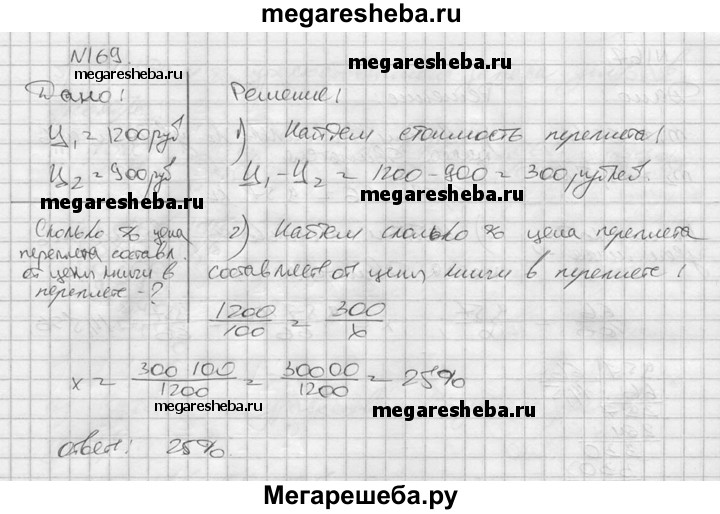 169. Книга в переплете стоит 1200 руб. Сколько процентов цена переплета составляет от цены книги в переплете, если книга без переплета стоит 900 руб.?