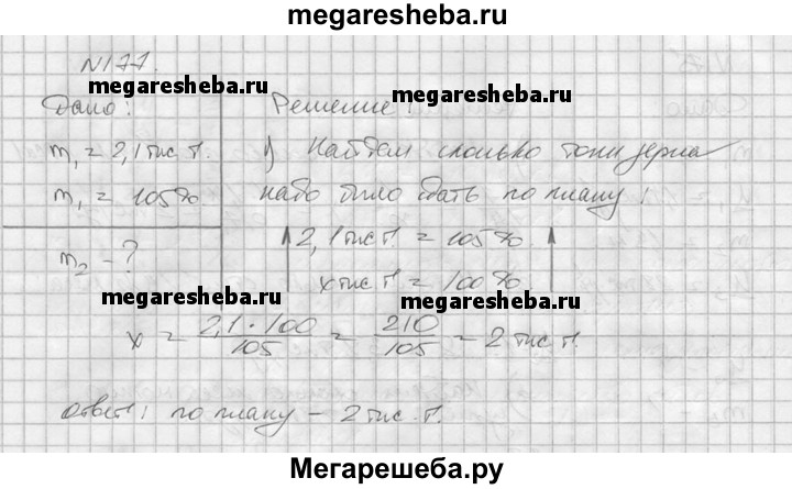 177. Когда сдали на элеватор 2,1 тыс.т пшеницы, то оказалось, что план сдачи зерна выполнен на 105%. Сколько тонн зерна надо было сдать по плану?