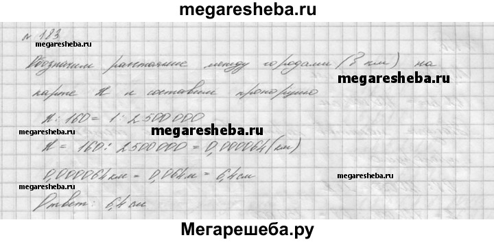 183. Расстояние между городами Камышин и Волгоград равно 160 км. Какое расстояние между этими городами на карте, масштаб которой 1: 2 500 000?