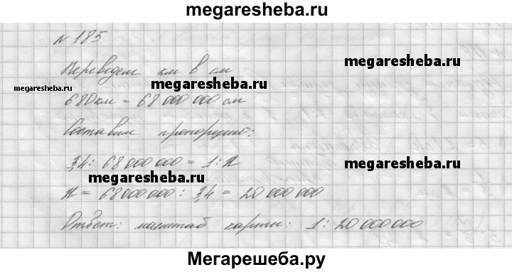 185. Расстояние между пунктами М и К на карте равно 3,4 см, а на местности 680 км. Найдите масштаб карты.