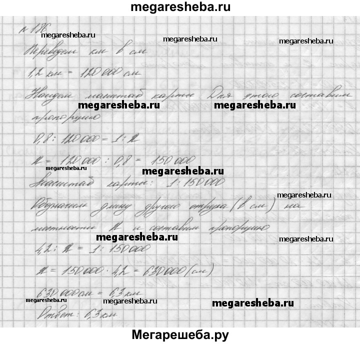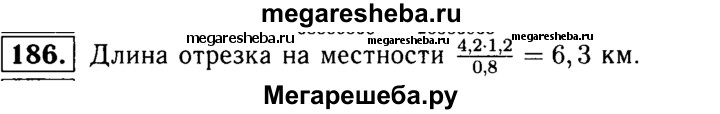 186. Один отрезок на карте имеет длину 0,8 см, а на местности 1,2 км. Другой отрезок на этой карте имеет длину 4,2 см. Найдите его длину на местности.