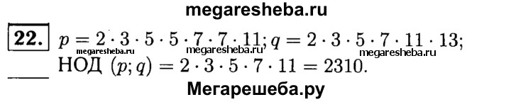 22. Найдите наибольший общий делитель чисел р и q, если р = 2*3*5*5*7*7*11 и q = 2*3*3*5*7*11*13.