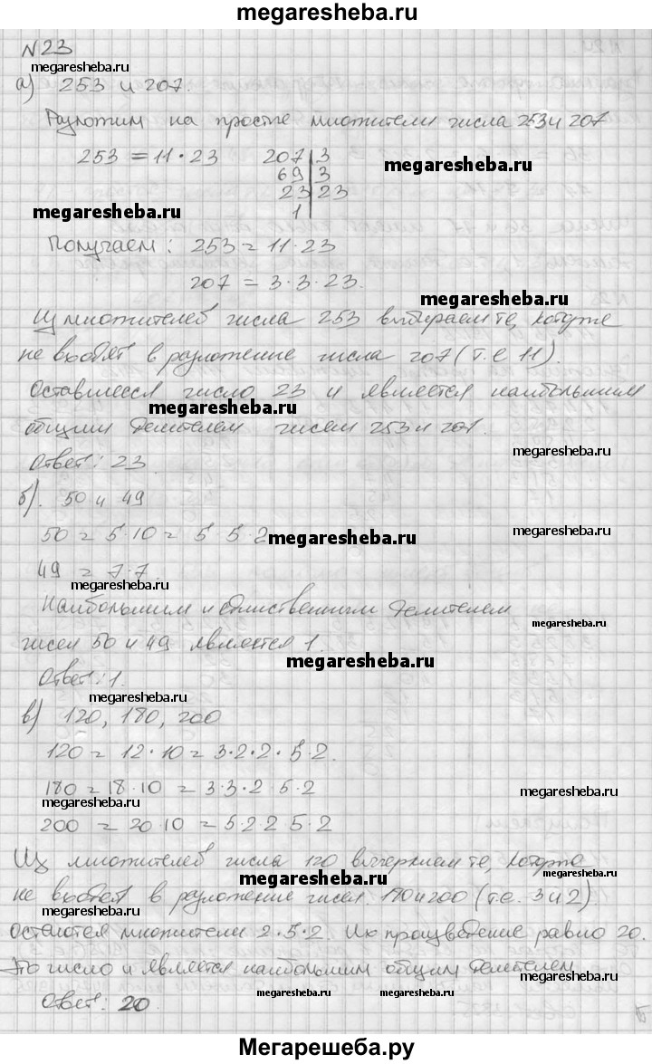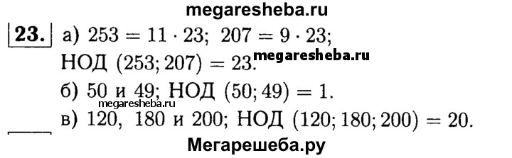 23. Найдите наибольший общий делитель чисел: а) 253 и 207; б) 50 и 49; в) 120, 180 и 200.
