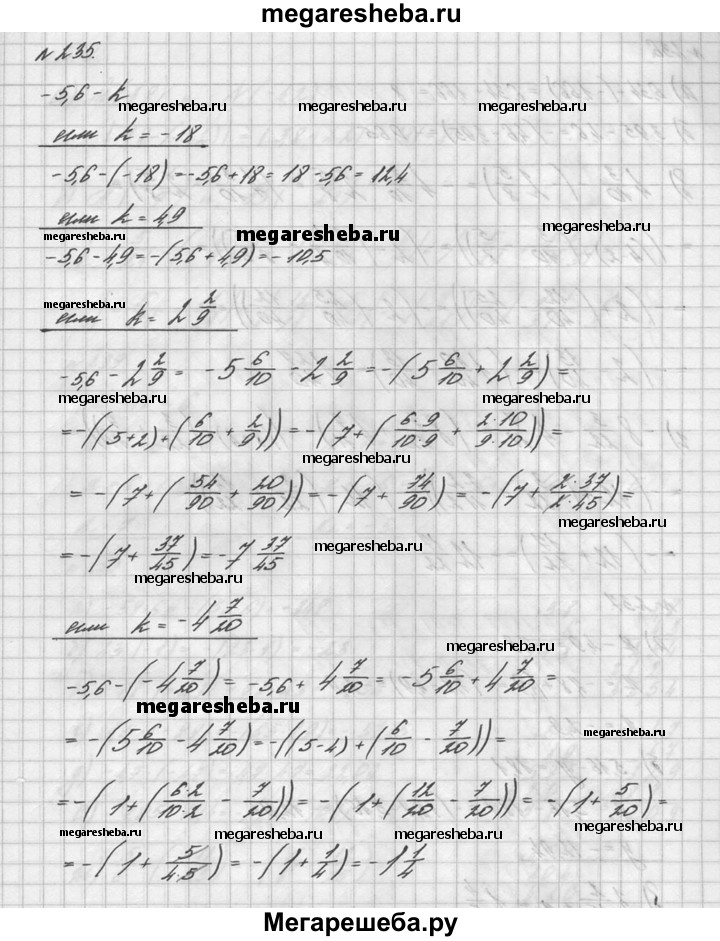 235. Найдите значение выражения -5,6 - k, если k = -18; k = 4,9; k = 2*2/9; k = - 4*7/20.