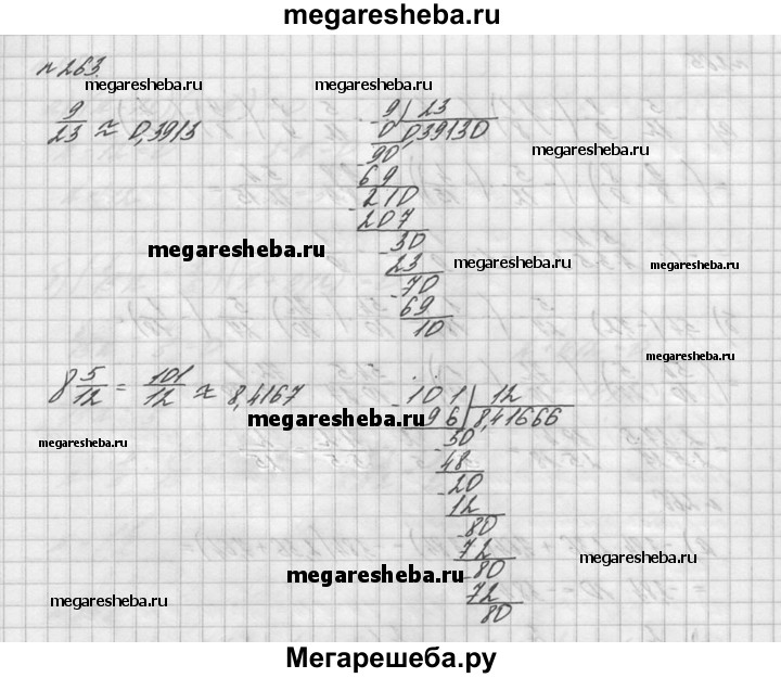 263. Выразите числа 9/23, 8*5/12 в виде приближенного значения десятичной дроби до десятитысячных.