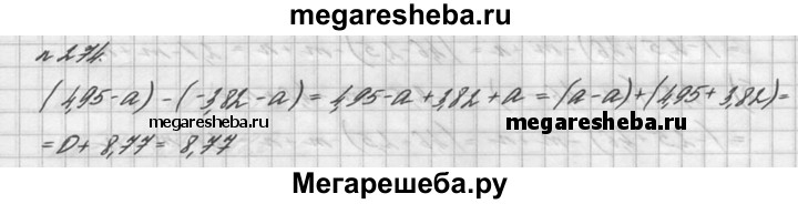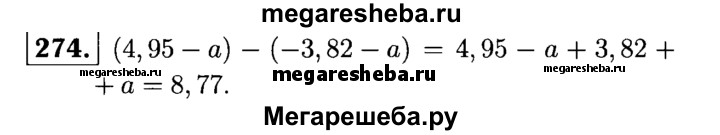 274. Составьте разность выражений 4,95 -а и -3,82 -а и упростите ее.