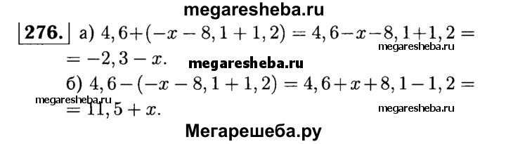 276. В выражении 4,6 -х - 8,1 + 1,2 заключите три последних слагаемых в скобки, поставив перед скобками: а) знак « + »; б) знак « - ».