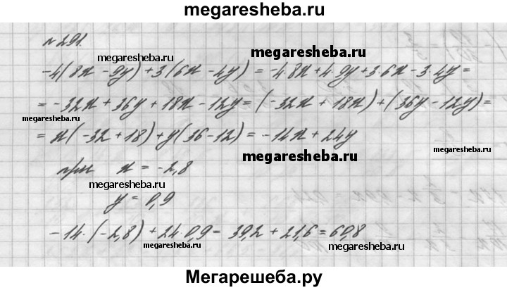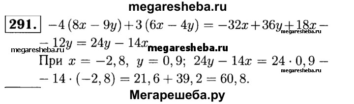 291. Найдите значение выражения -4(8x-9y) + 3(6x – 4y), если x + -2/8, y = 0,9.