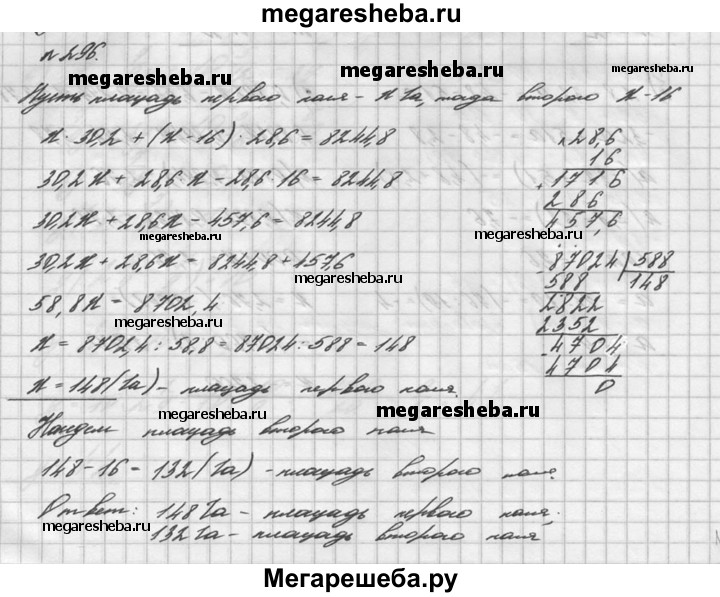 296. С двух полей собрали 8244,8 ц пшеницы. С первого поля собрали в среднем по 30,2 ц зерна с гектара, а со второго поля 28,6 ц с гектара. Найдите площадь каждого поля, если площадь второго поля на 16 га меньше первого.