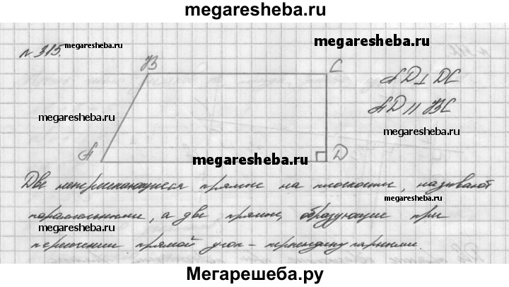 315. Постройте четырехугольник ABCD, у которого AD перпендикулярно DC и AD перпендикулярно BC, причем AB не параллельны DC.