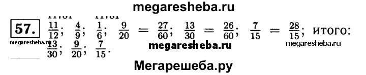 57. Запишите дроби 11/12, 4/9 и 1/6 в порядке убывания, а дроби 9/20, 13/30 и 7/15 в порядке возрастания.