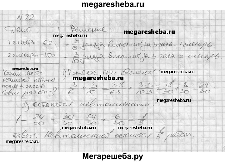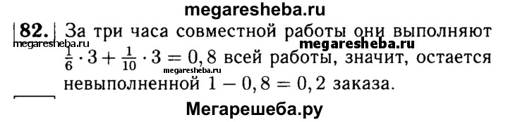 82. Один слесарь может выполнить заказ за 6 ч, а другой — за 10 ч. Какая часть заказа останется невыполненной после трехчасовой совместной работы обоих слесарей?