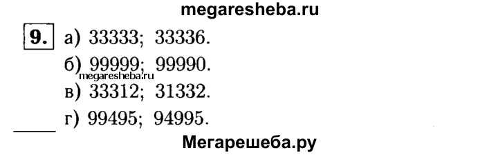 9. Напишите два пятизначных числа: а) кратных 3; б) кратных 9; в) кратных 2 и 3; г) кратных 9 и 5.