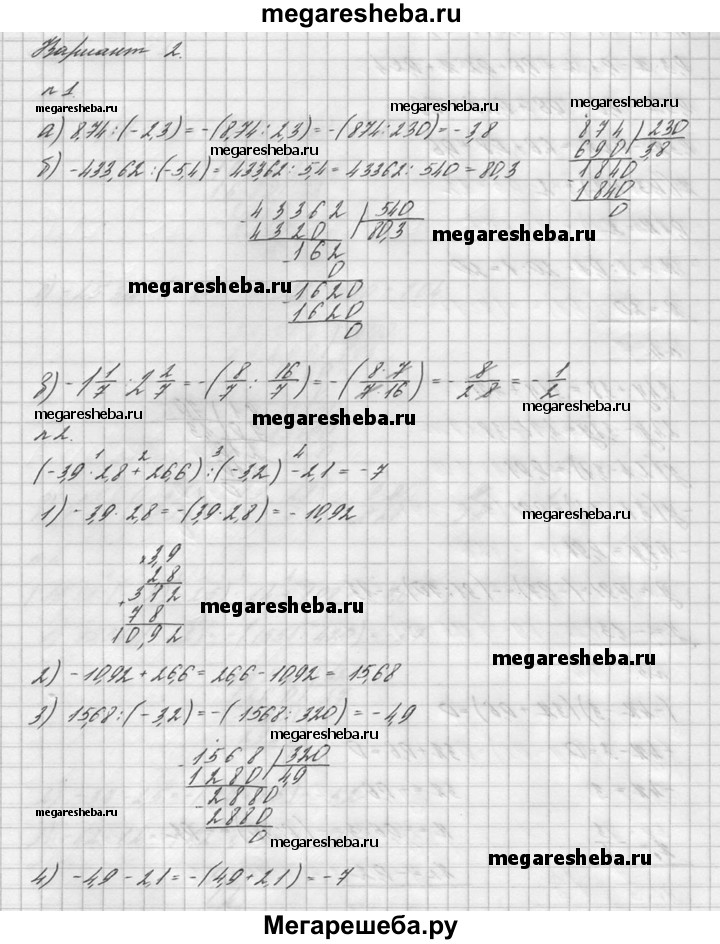 1. Выполните действие: а) 8,74 : (-2,3) б) - 433,62 : (-5,4) в) -1*1/7 : 2*2/7. 2. Найдите значение выражения (-3,9 * 2,8 + 26,6) : (-3,2) - 2,1. 3. Решите уравнение 0,3 (х - 2) = 0,6 + 0,2 (х + 4). 4. При каких значениях у выражение 2,4у + 3,8 равно выражению 3,1у + 4,71? 5. Найдите корни уравнения (-4х - 3) (3х + 0,6) =0.