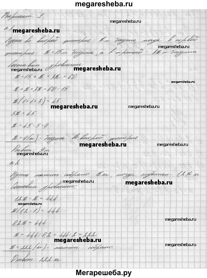 1. В трех цистернах 60 т бензина. В первой цистерне на 15 т больше, чем во второй, а в третьей — в 3 раза больше, чем во второй. Сколько тонн бензина во второй цистерне? 2. С участка собрано клубники в 1,2 раза больше, чем малины. Сколько собрано малины, если ее собрано на 44,4 кг меньше, чем клубники? 3. Упростите выражение – 2/3m * 0,2 (-0,5)(-1*1/2). 4. Найдите значение выражения (1,8 * 0,4 – 2*8/15 : 6*1/3) : (-0,8). 5. Уменьшаемое равно а, вычитаемое равно b. Чему равен результат, если из уменьшаемого вычесть разность этих чисел?