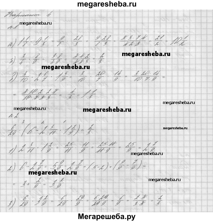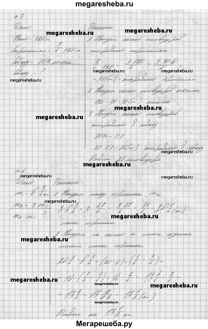 1. Выполните действия: а) 1*1/8 * 9*1/3 б) 3/4 * 8/9 в) 3/10 * 2*6/7 * 1*5/9. 2. Найдите значение выражения: 6/29 * (6 – 2*3/11 * 1*2/9). 3. Завод изготовил сверх плана 120 телевизоров. 3/4 этих телевизоров отправлено строителям гидростанции, а 80% остатка — в рисоводческий совхоз. Сколько телевизоров было отправлено в рисоводческий совхоз? 4. Масса козленка 6*3/4 кг, а масса поросенка в 3 раза больше. На сколько килограммов масса козленка меньше массы поросенка? 5. Не приводя к общему знаменателю, сравните дроби 52/53 и 53/54.