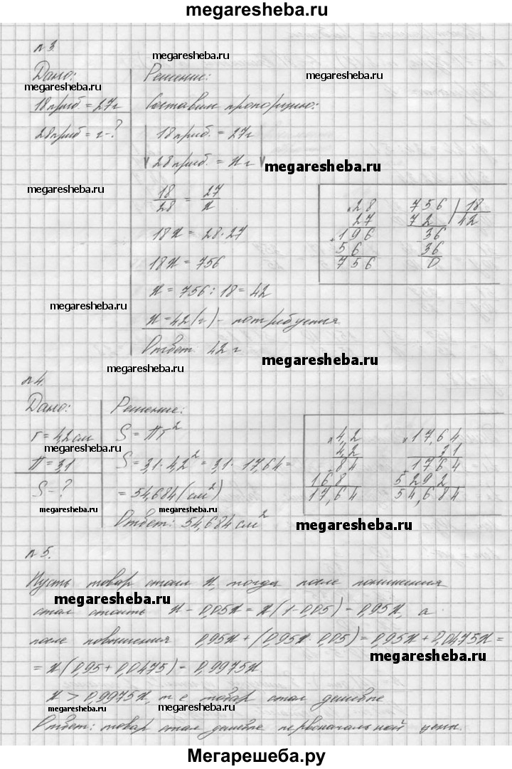 1. Решите уравнение у : 4,2 = 3,4 : 5,1. 2. На изготовление некоторого количества одинаковых деталей первый станок-автомат тратит 3,5 мин, а второй 5 мин. Сколько деталей в минуту изготовляет второй станок, если первый станок изготовляет 20 деталей в минуту? 3. Для изготовления 18 одинаковых приборов потребовалось 27 г платины. Сколько платины потребуется на изготовление 28 таких приборов? 4. Найдите площадь круга, если его радиус равен 4,2 см. (Число π округлите до десятых.) 5. Сначала цена товара понизилась на 5%, а затем его новая цена повысилась на 5%. Стал товар дороже или дешевле его первоначальной цены?