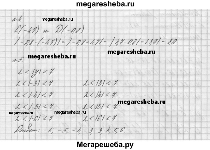 1. Выполните действие: а) -3,5 + 8,1 б) -2,9 - 3,6 в) -7,5 + 2,8 г) 4,5 - 8,3 д) -5/6 + 3/8 е) -2*5/7 – 1*3/14. 2. Найдите значение выражения (6/35 – 4/7) – (-1,8 – 4,3) – 5,7. . 3. Решите уравнение: а) 5,23 + х = -7,24 б) у – 2*5/12 = -3*7/15. 4. Найдите расстояние между точками С (-4,7) и D(-0,8) на координатной прямой. 5. Напишите все целые значения у, если 2 <|у| <7.