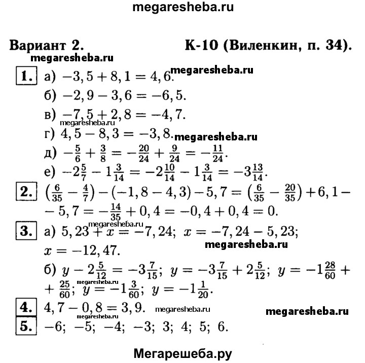 Подробный решебник (ГДЗ) по Математике за 6 (шестой) класс дидактические материалы - готовый ответ контрольная работа Виленкин К-10 - В2. Авторы учебника: Чесноков, Нешков. Издательство: Академкнига 2015-2022.