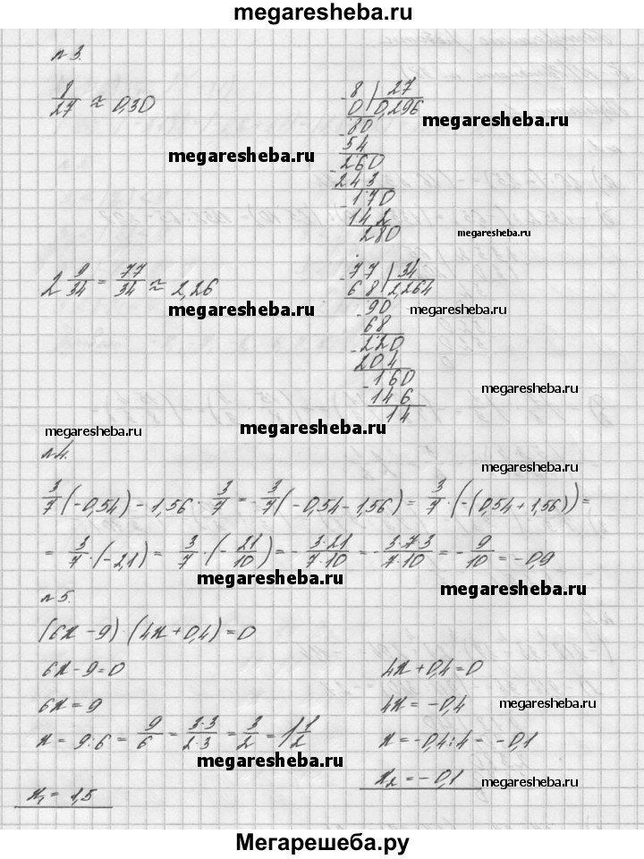 1. Выполните действие: а) 1,6 * (-4,5) б) -135,2 : (-6,5) в) -1*7/8 * 1*1/3 г) 1*2/3 : (-3*1/3). 2. Выполните действия: (-9,18 : 3,4 - 3,7) * 2,1 + 2,04. 3. Выразите числа 8/27 и 2*9/34 в виде приближенного значения десятичной дроби до сотых. 4. Найдите значение выражения 3/7(-0,54) - 1,56 * 3/7. 5. Найдите корни уравнения (6х - 9) (4х + 0,4) = 0.