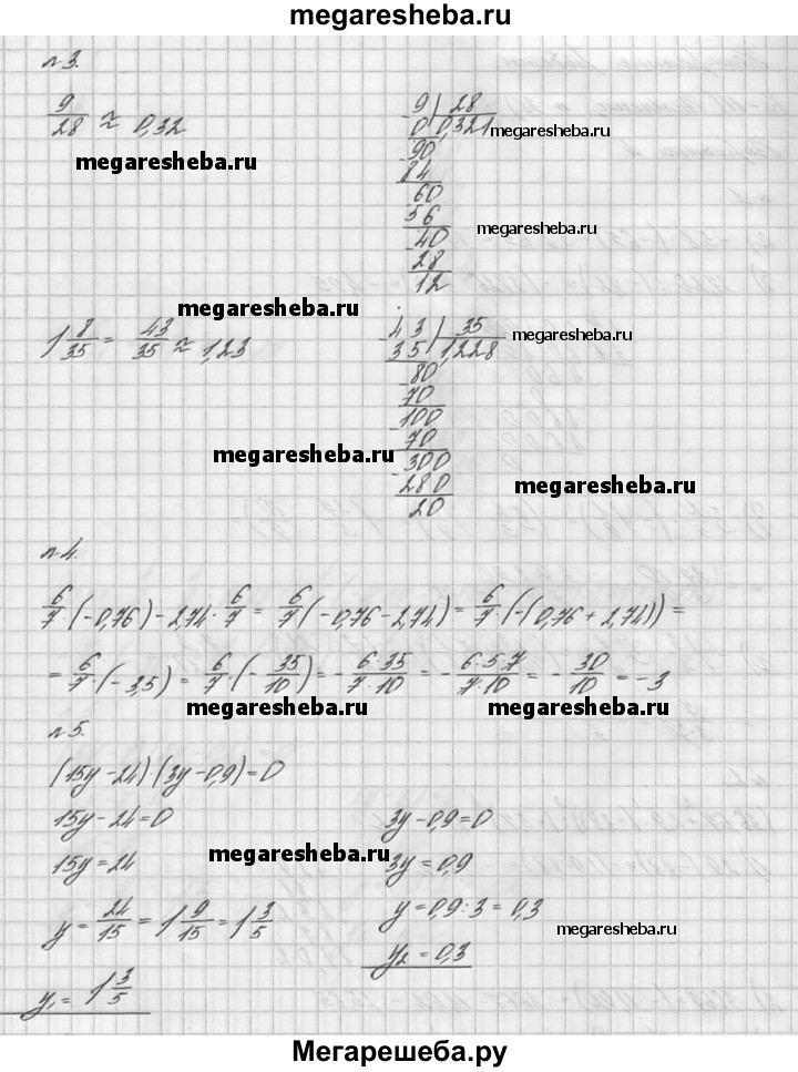 1. Выполните действие: а) -5,8 * (-6,5) б) 37,26 : (-9,2) в) 5*2/5 * (-1*1/9) г) -1*3/4 : 5*1/4. 2. Выполните действия: (36,67 + 2,9 * (-3,8)) : (-5,7) + 2,5. 3. Выразите числа 9/28 и 1*8/35 в виде приближенного значения десятичной дроби до сотых. 4. Найдите значение выражения 6/7 * (-0,76) - 2,74 * 6/7. 5. Найдите корни уравнения (15у - 24) (3у - 0,9) = 0.