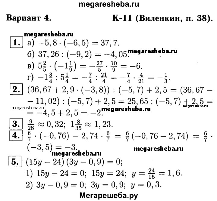 ГДЗ по математике 6 класс Чесноков дидактические материалы контрольная работа Виленкин К-11 - В4