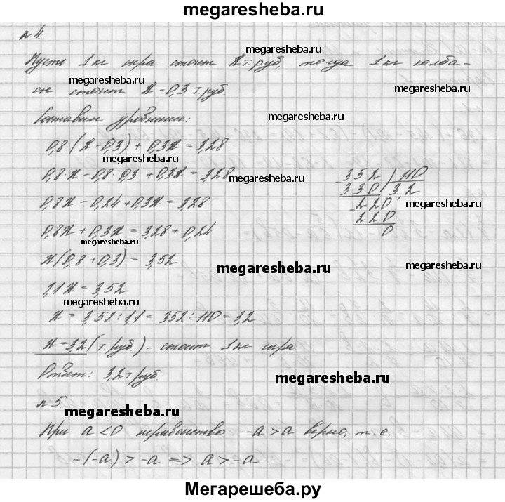 1. Раскройте скобки и найдите значение выражения 23,6 + (14,5 - 30,1) - (6,8 + 1,9). 2. Упростите выражение 2/7(1,4а – 3*1/2b) – 1,2(5/6а – 0,5b). 3. Решите уравнение 0,6 (х + 7) - 0,5 (х - 3) = 6,8. 4. Купили 0,8 кг колбасы и 0,3 кг сыра. За всю покупку заплатили 3,28 тыс. рублей. Известно, что 1 кг колбасы дешевле 1 кг сыра на 0,3 тыс. рублей. Сколько стоит 1 кг сыра? 5. При каких значениях а верно -а > а?