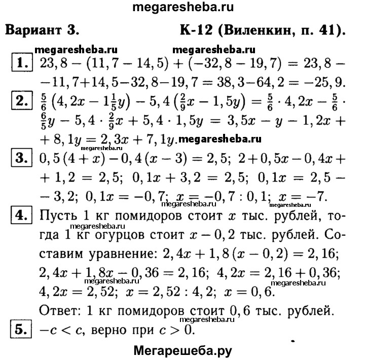 ГДЗ по математике 6 класс Чесноков дидактические материалы контрольная работа Виленкин К-12 - В3