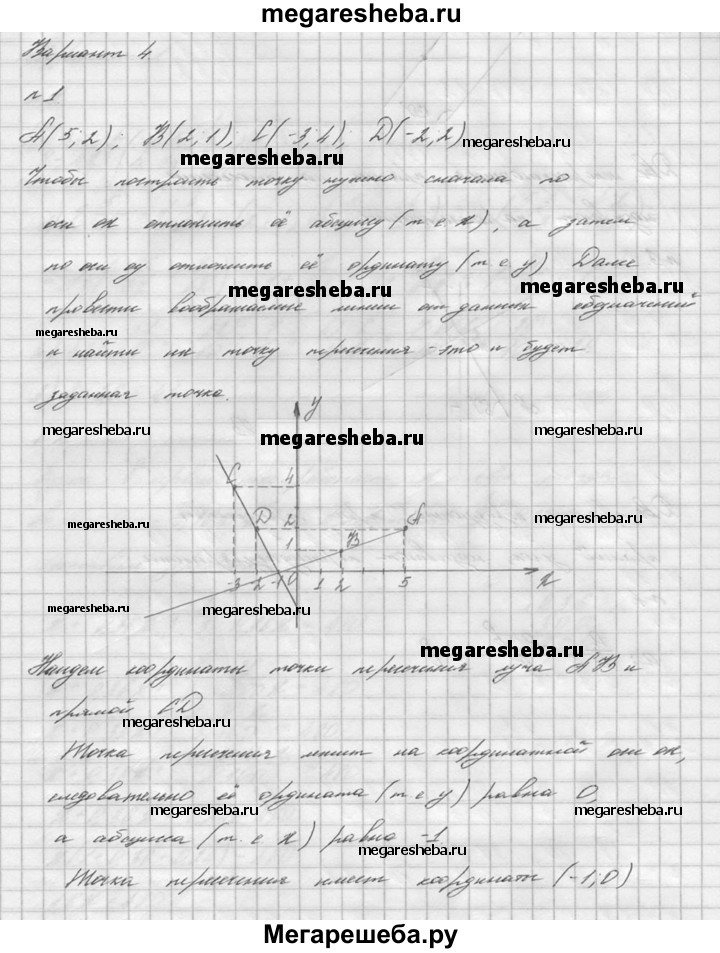 1. Отметьте на координатной плоскости точки А (5; 2), В (2; 1), С (-3; 4) и D (-2; 2). Проведите луч АВ и прямую CD. Найдите координаты точки пересечения луча АВ и прямой CD. 2. Постройте угол, равный 130°, и отметьте внутри него точку. Проведите через эту точку прямые, параллельные сторонам угла. 3. Постройте угол ВАС, равный 60°. Отметьте на стороне АС точку М и проведите через нее прямые, перпендикулярные сторонам угла ВАС. 4. Делимое равно а, а делитель равен b (а и b не равны нулю). Каков будет результат, если разделить делимое на частное этих чисел?