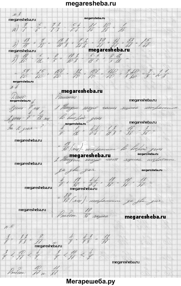 1. Сократите дроби 35/42, 70/84, 84/56. 2. Сравните дроби: а) 3/16 и 5/24 б) 13/330 и 9/220. 3. Выполните действия: а) 7/8 – 5/6 б) 13/16 + 7/24 в) 19/20 – 5/12 +9/5. 4. В первый день истратили 4/9 ящика гвоздей, а во второй день — на 1/12 ящика меньше, чем в первый. Какую часть ящика гвоздей истратили за эти два дня? 5. Найдите две дроби, каждая из которых больше 3/7, но меньше 4/7.