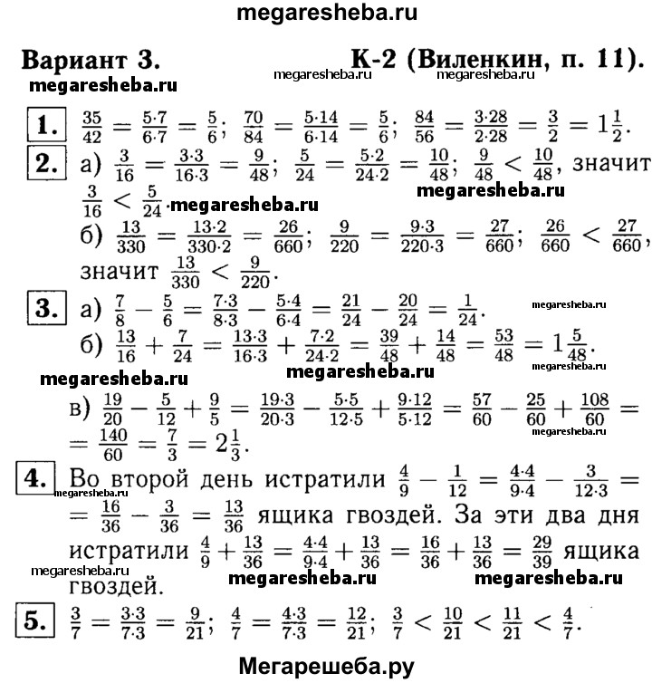ГДЗ по математике 6 класс Чесноков дидактические материалы контрольная работа Виленкин К-2 - В3