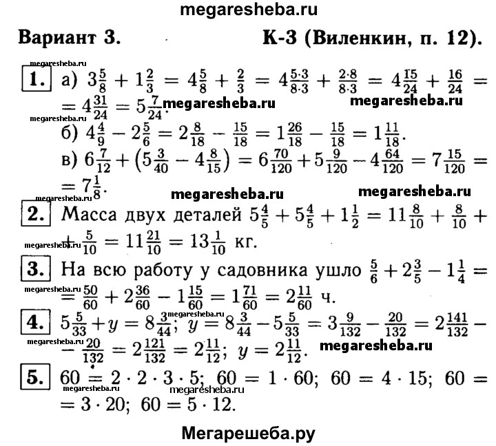 Подробный решебник (ГДЗ) по Математике за 6 (шестой) класс дидактические материалы - готовый ответ контрольная работа Виленкин К-3 - В3. Авторы учебника: Чесноков, Нешков. Издательство: Академкнига 2015-2022.