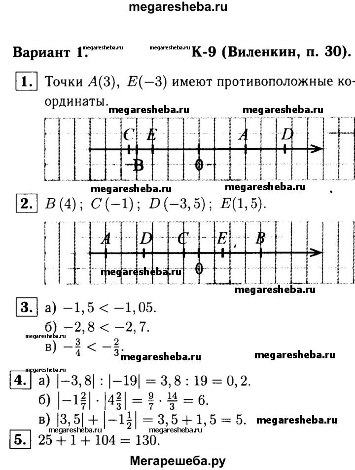 ГДЗ по математике 6 класс Чесноков дидактические материалы контрольная работа Виленкин К-9 - В1