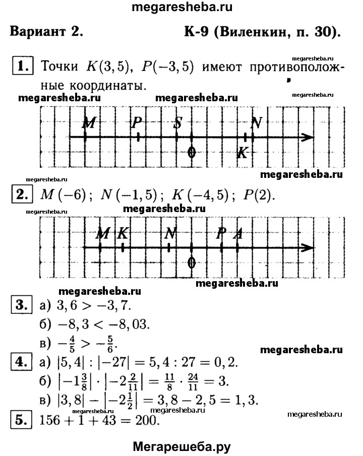 ГДЗ по математике 6 класс Чесноков дидактические материалы контрольная работа Виленкин К-9 - В2