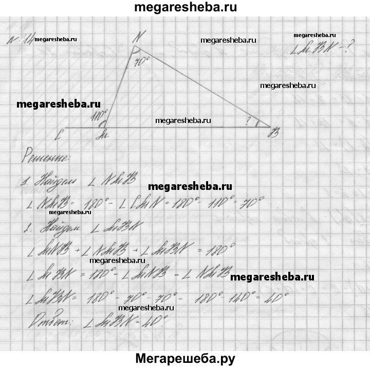 14. Зная, что сумма углов в любом треугольнике равна 180°, определите по рисунку 9 градусную меру угла MKN.